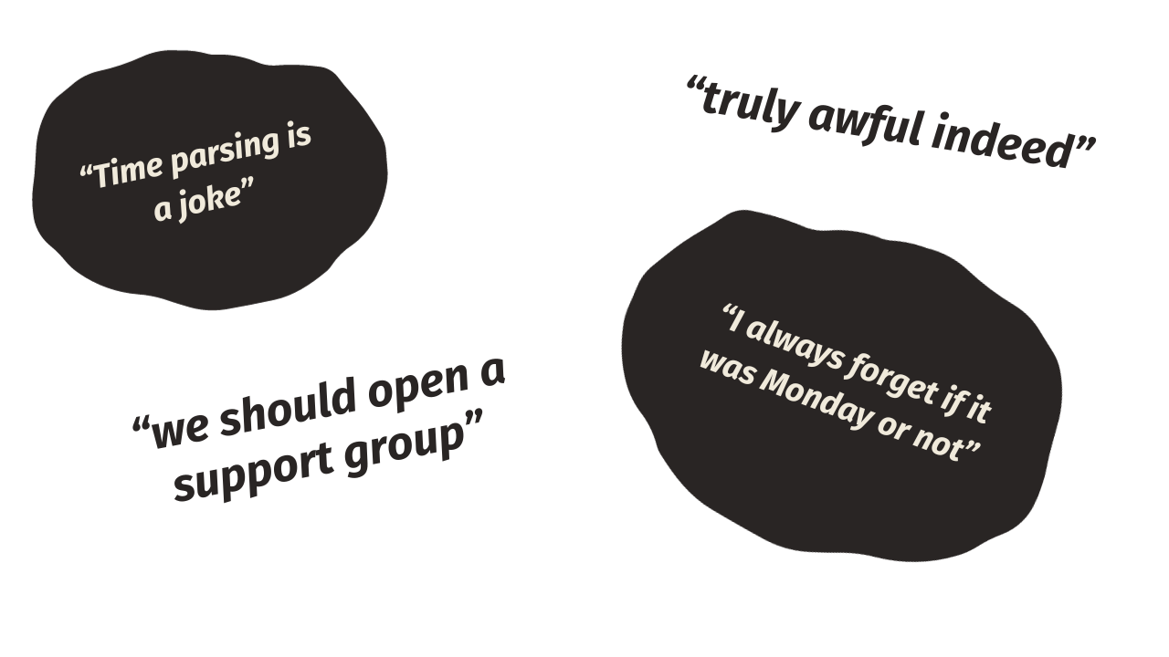 I hope this article clears up some possible misconceptions around time.Parse. Feel free to reach out if you have any questions or need help :)